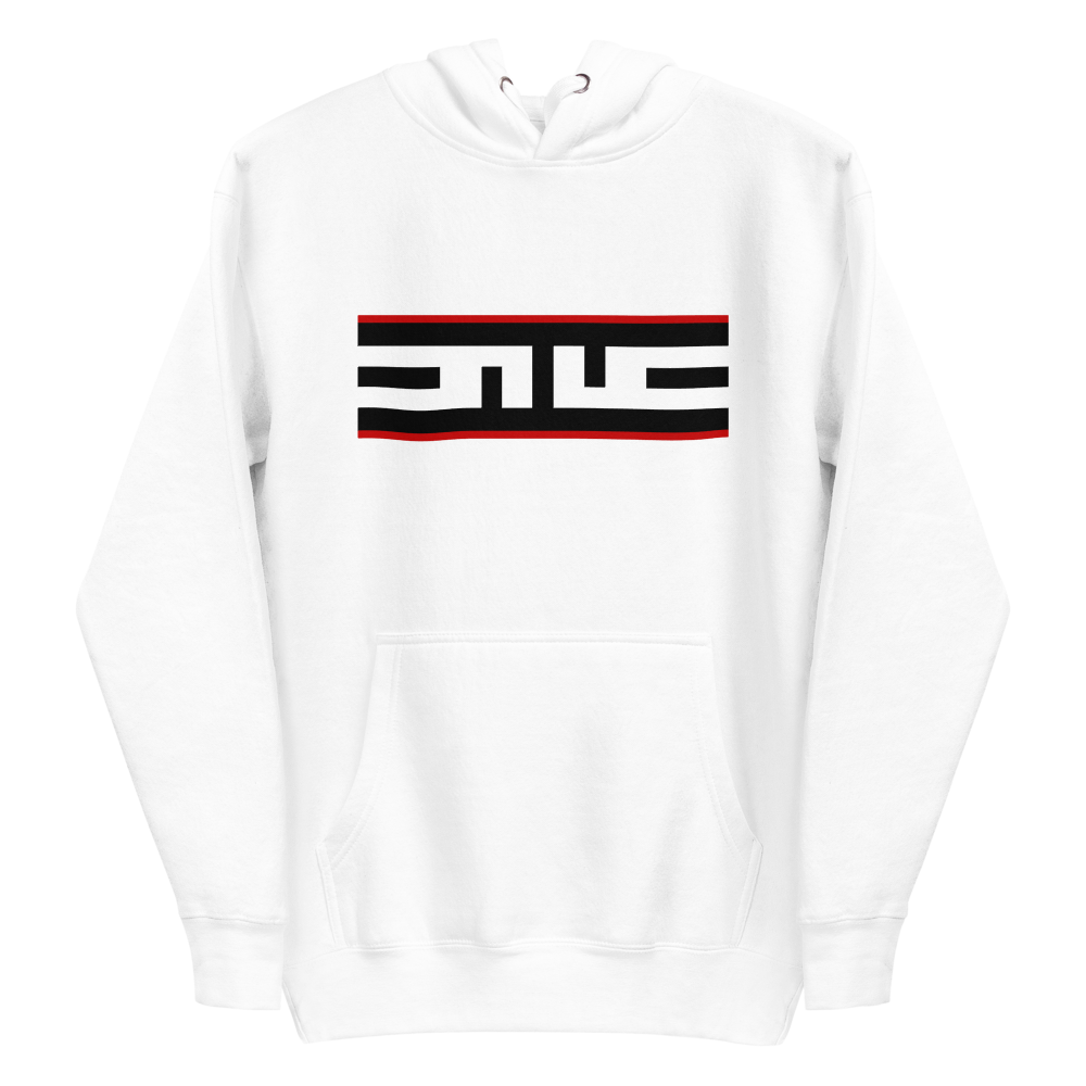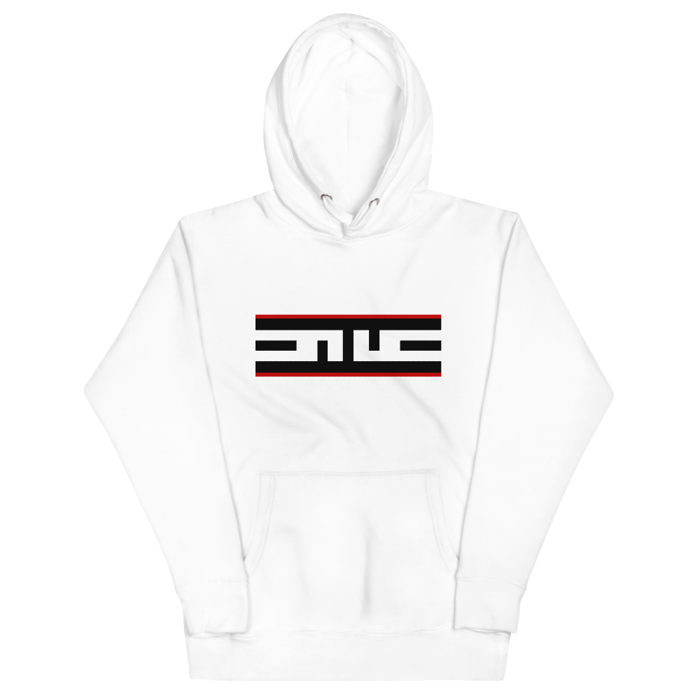 The Red Label collection is highlighted by this snow white hoodie. This classic streetwear piece of apparel with a convenient pouch pocket and warm hood for chilly evenings.